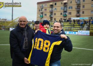 - Espedito Longobardi, lontano da Castellammare per lavoro ma sempre con i nostri colori nel cuore.... A ritirare il premio è suo padre Michele, che riceve la maglia da trasferta numero 108