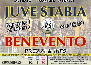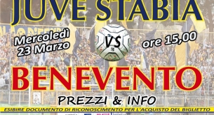 S.S. Juve Stabia rende noto che da oggi, domenica 20 marzo, sono disponibili in prevendita, fino alle ore 15,00 del 23 marzo, i tagliandi di ingresso per assistere alla gara Juve Stabia-Benevento, che si disputerà mercoledì 23 marzo alle ore 15,00 presso lo Stadio “Romeo Menti” di Castellammare di Stabia, valevole per la 28a giornata del Girone C della Lega Pro Divisione Unica 2015/2016.