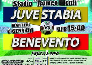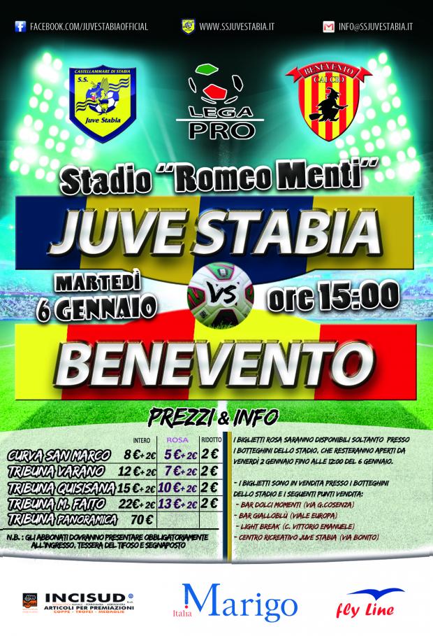 S.S. Juve Stabia rende noto che sono disponibili in prevendita, fino alle ore 15,00 di martedì 6 gennaio, i tagliandi di ingresso per assistere alla gara Juve Stabia-Benevento, che si disputerà martedì 6 gennaio alle ore 15,00 allo Stadio “Romeo Menti”, valevole per la 19a giornata del Girone C della Lega Pro Divisione Unica 2014/2015.