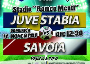 S.S. Juve Stabia rende noto che sono disponibili in prevendita, fino alle ore 12,30 del 30 novembre, i tagliandi di ingresso per assistere alla gara Juve Stabia-Savoia, che si disputerà domenica 30 novembre alle ore 12,30 allo Stadio “Romeo Menti”, valevole per la 15a giornata del Girone C della Lega Pro Divisione Unica 2014/2015.