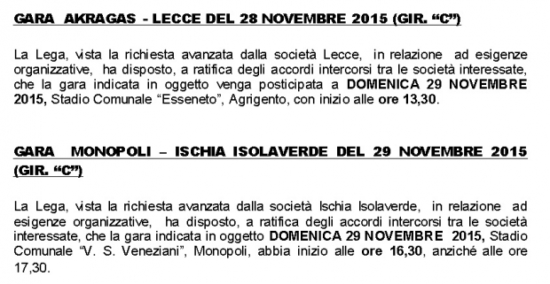 Designati come assistenti Salvatore Stasi e Luigi Lanotte continua