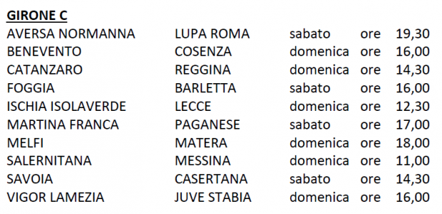 Le date e gli orari delle partite del Girone C continua