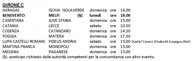 Le date e gli orari delle partite del Girone C continua