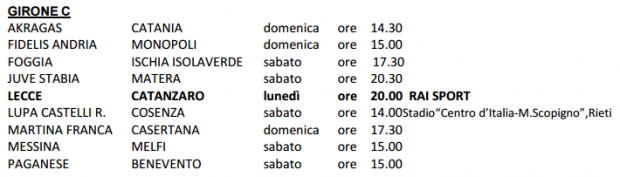 Le date e gli orari delle partite del Girone C continua