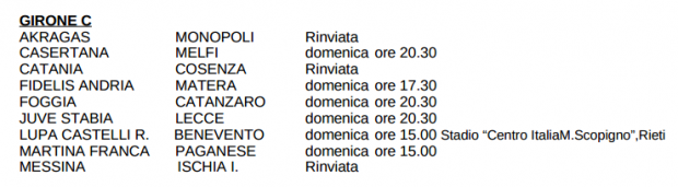 Le date e gli orari delle partite del Girone C continua