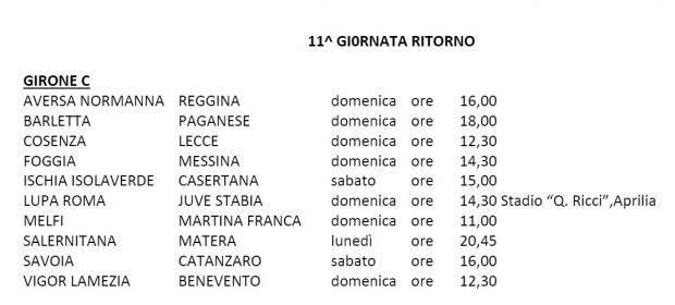 Le date e gli orari delle partite del Girone C continua
