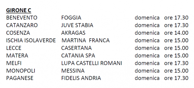 Le date e gli orari delle partite del Girone C continua
