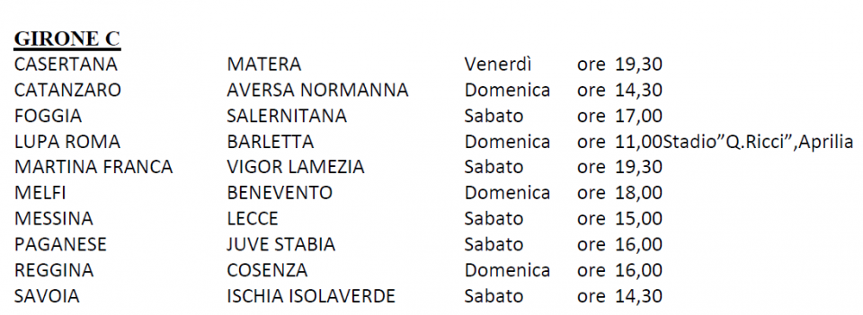 Le date e gli orari delle partite del Girone C continua